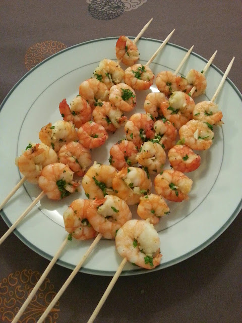 Espetadas de camarão grelhadas