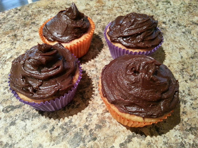 Encontrei esta receita e a cobertura foi improvisada por mim. Ficou uma delicia e o chocolate preto corta perfeitamente o gosto doce dos cupcakes. Experimentem!