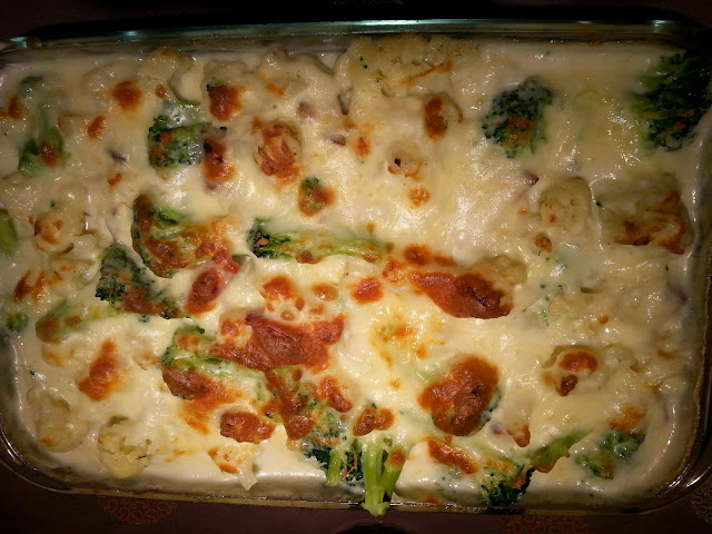 Cubra os legumes com este molho, terminando com queijo ralado e leve a forno pré-aquecido a 200C durante cerca de 15 minutos, até o queijo derreter e começar a ficar tostado.
